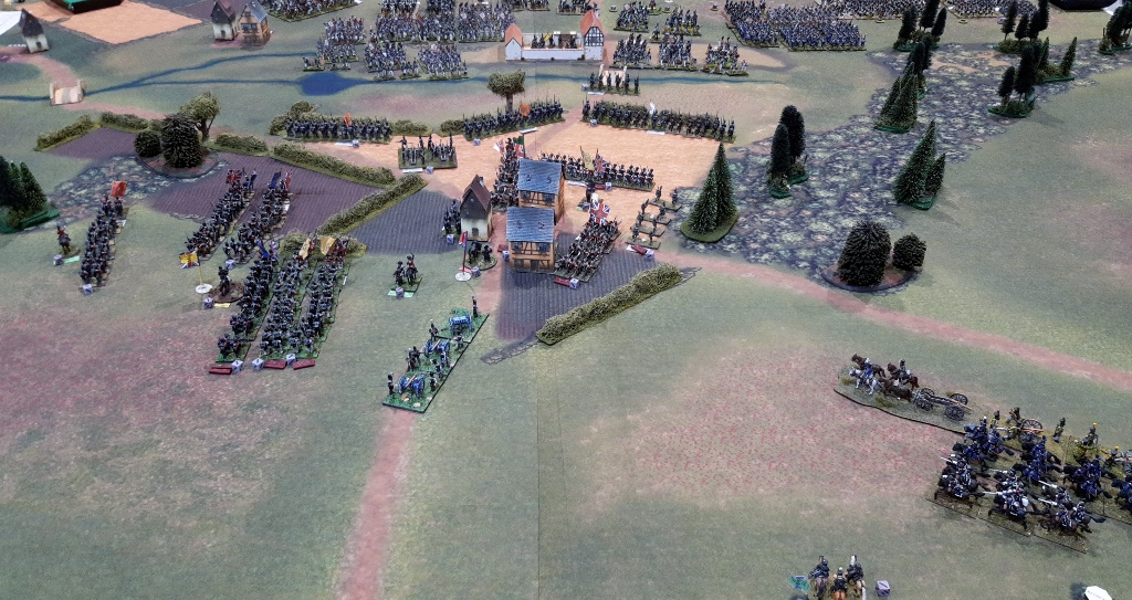 French move. The infantry in mixed order attack column, the artillery held back to try and oust out the Jagers.