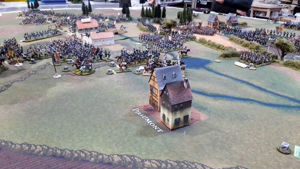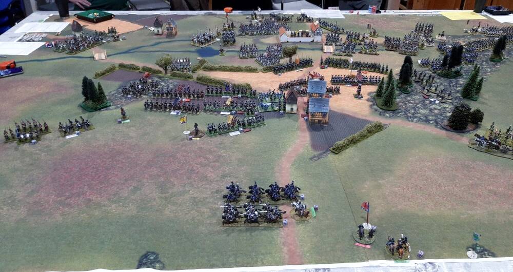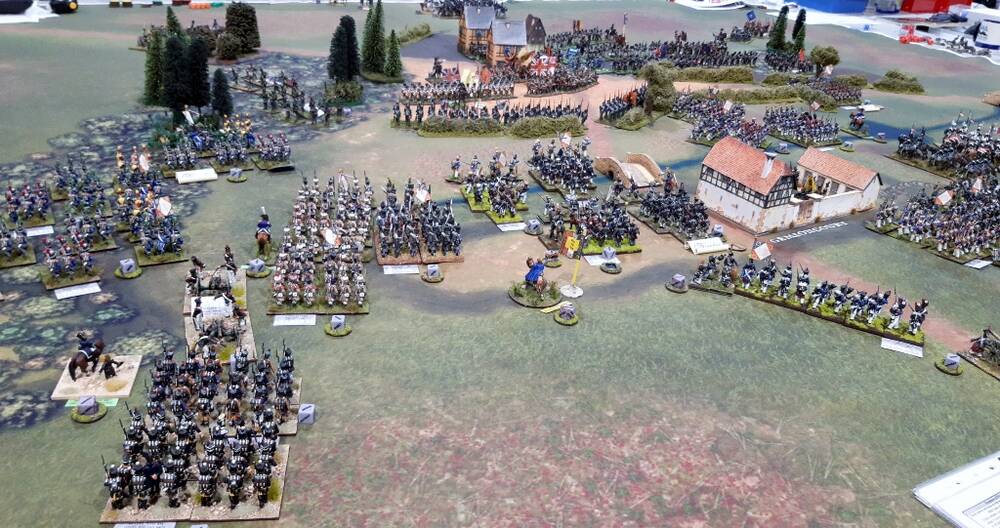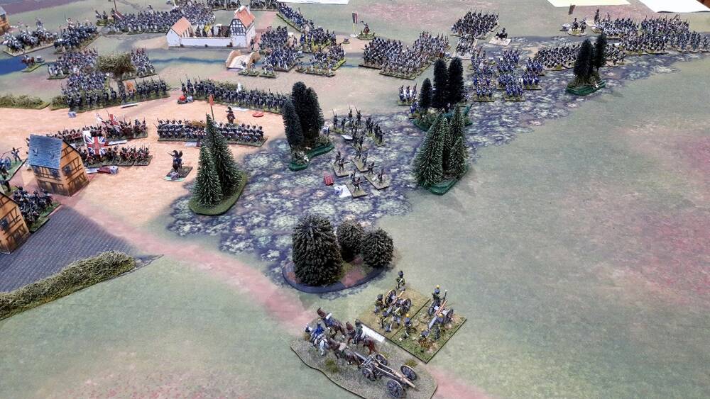 Vinke gets a battalion in square and foot artillery to threaten and slow Pire’s advance.