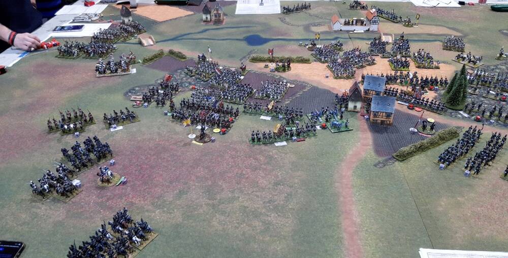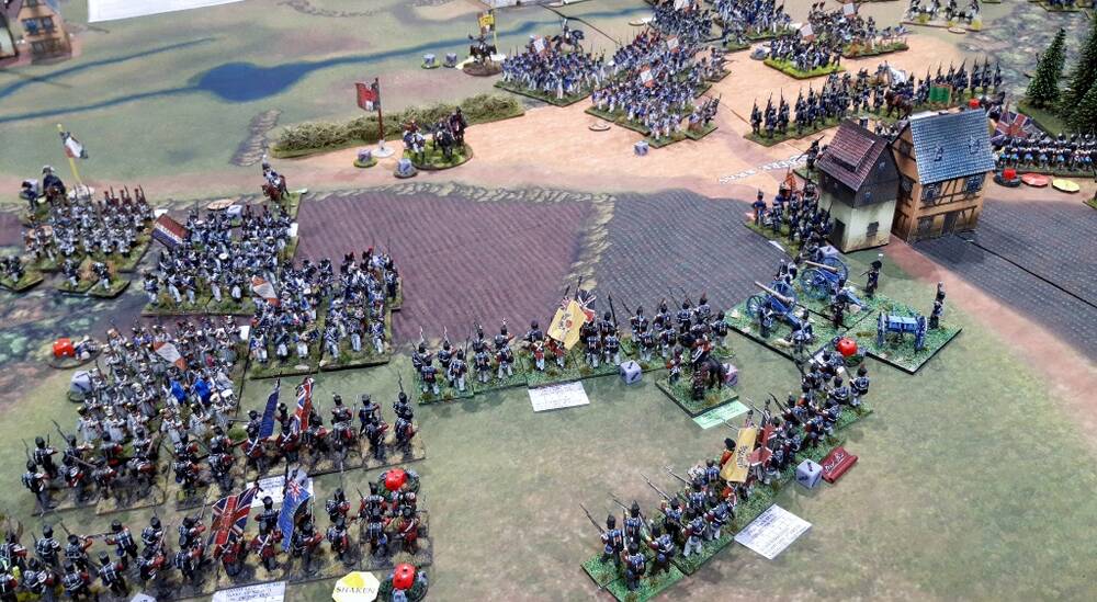 Foy’s brigade of Jamin line and Leger fail to activate and are stuck in the woods, the Brunswick lights move in to protect the woods. J. Bonaparte takes on Brunswick and the KGL.