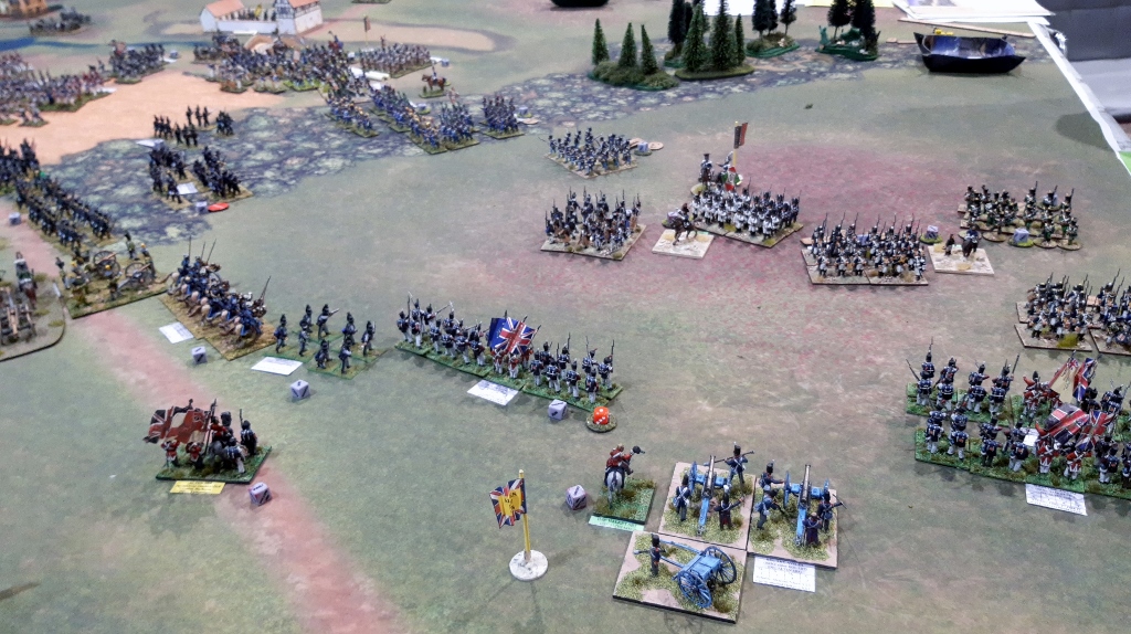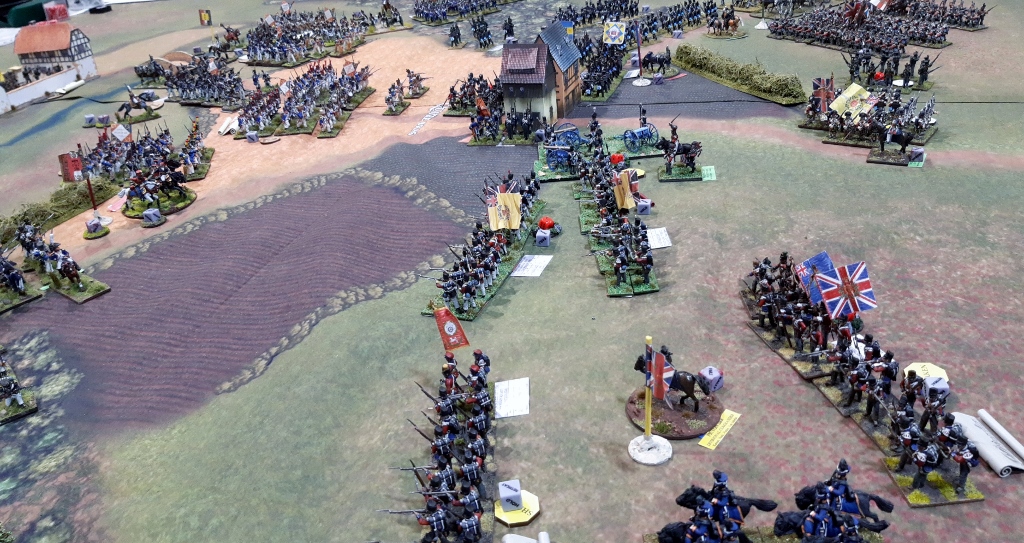 The right flank Brunswick and Alten’s other KGL do more damage to J. Bonaparte, Baudin loses a unit (2 VPs).