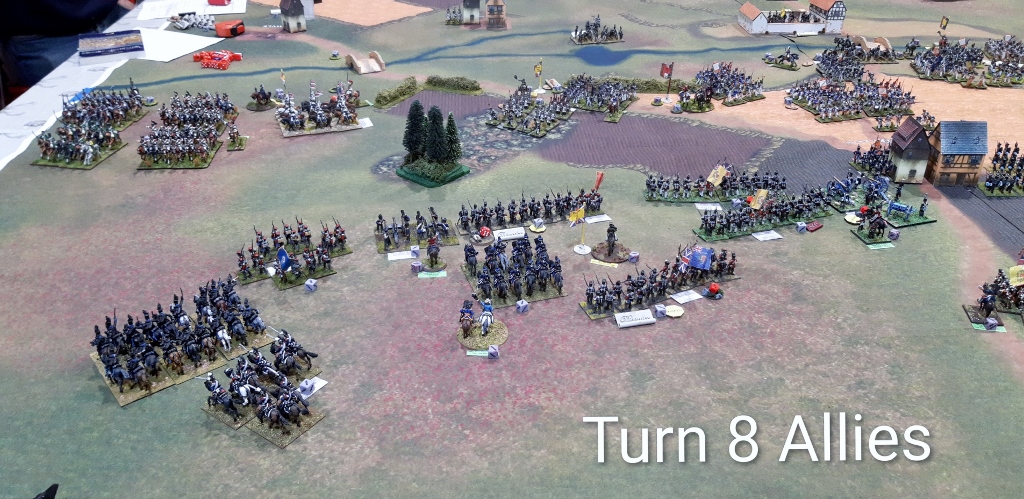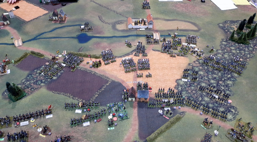 Husson’s / Campi attack stalls. Foy’s attack with Tissot and Jamin falters. A Leger unit attacks the light infantry of Brunswick and fails, and breaks (2 VPs).