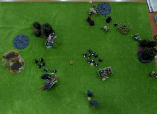 The end of Turn 3 - the Orcs pushing up to attack the Dwarves who seem content to sit where they started.